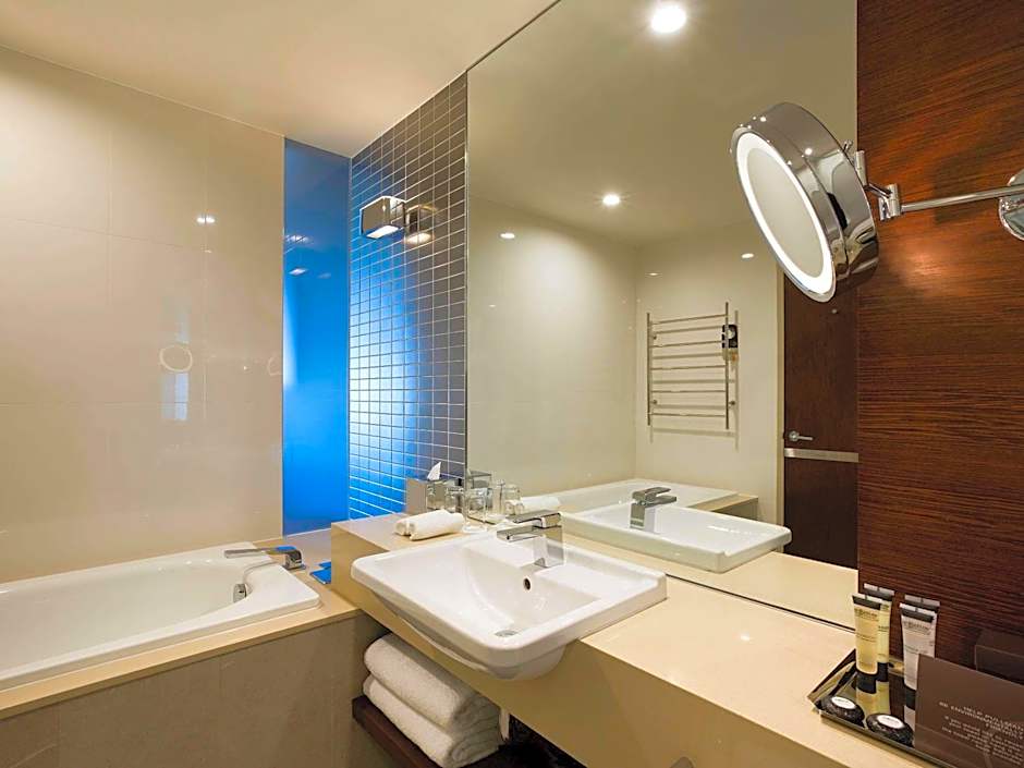 112 ft² room with king bed, high level with city or stadium views, Nespresso Machine, smart TV, large windows, modern design working desk, mini-bar, tea & coffee making facilities and marble bathroom with separate bath & shower.
